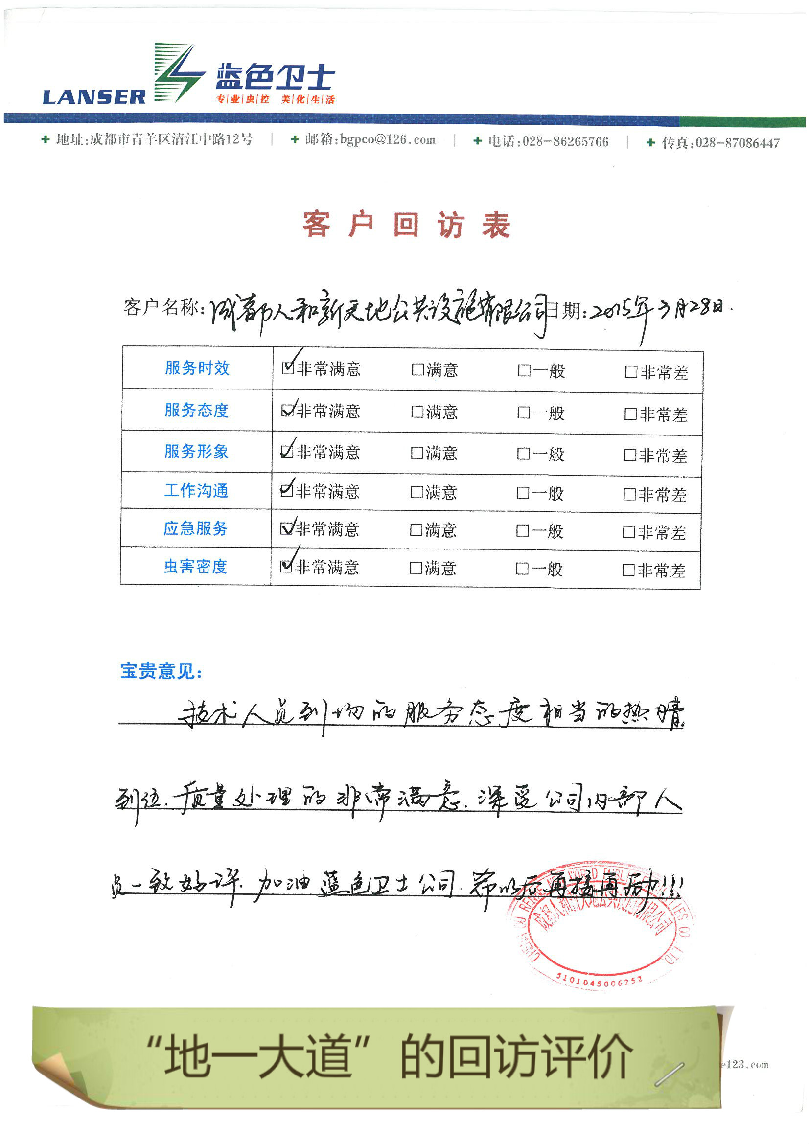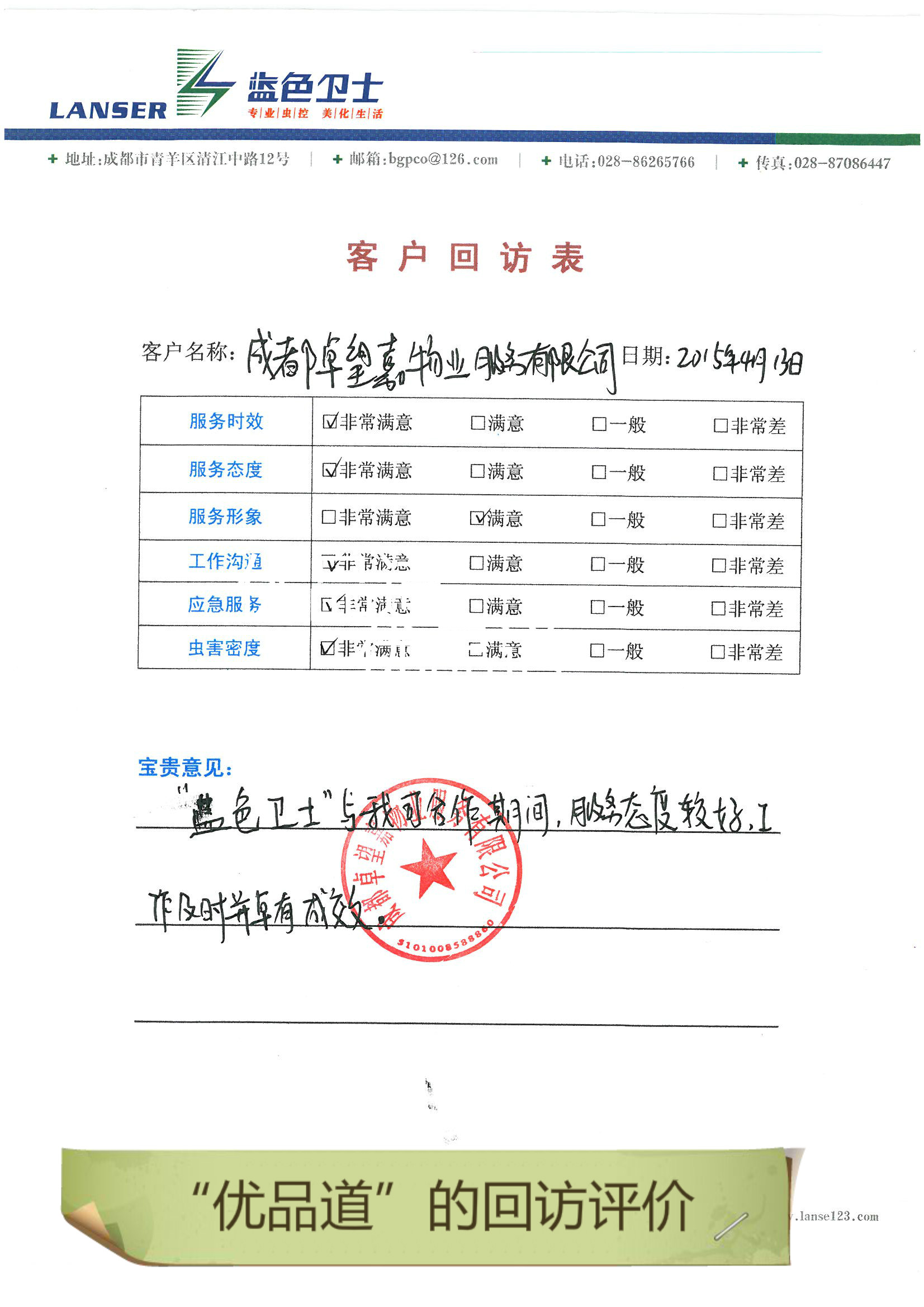 通過合作,對四害的消殺控制的很好,符合項目品質(zhì)要求!